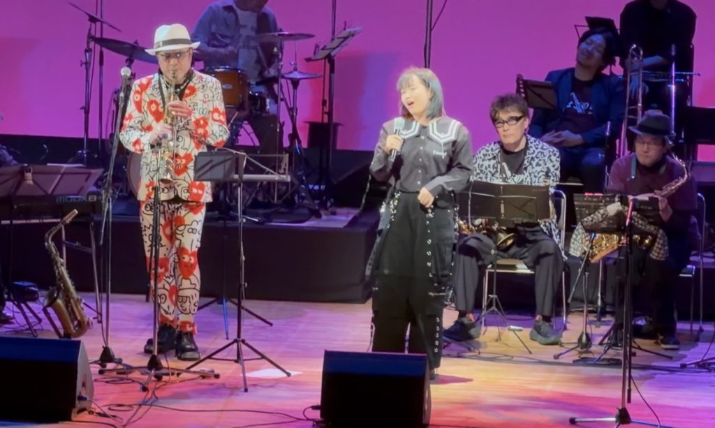 目的は多々ありましたが、まずは文化センターで行われたライブを観ることでした。楽市JAZZ楽団という市民バンドで演奏はプロ級、中心になっているのが野々田万照氏、私の歌の師匠です。